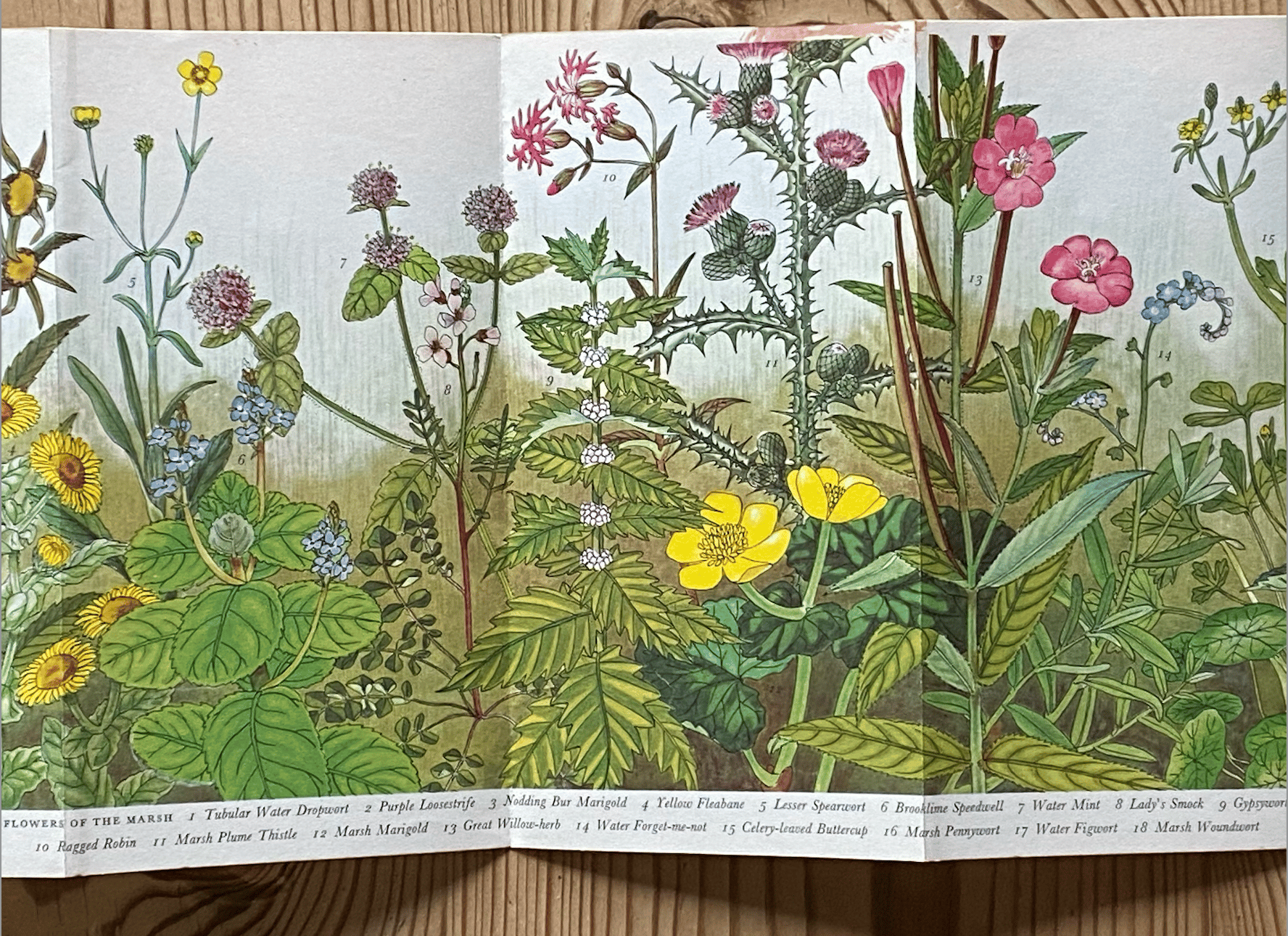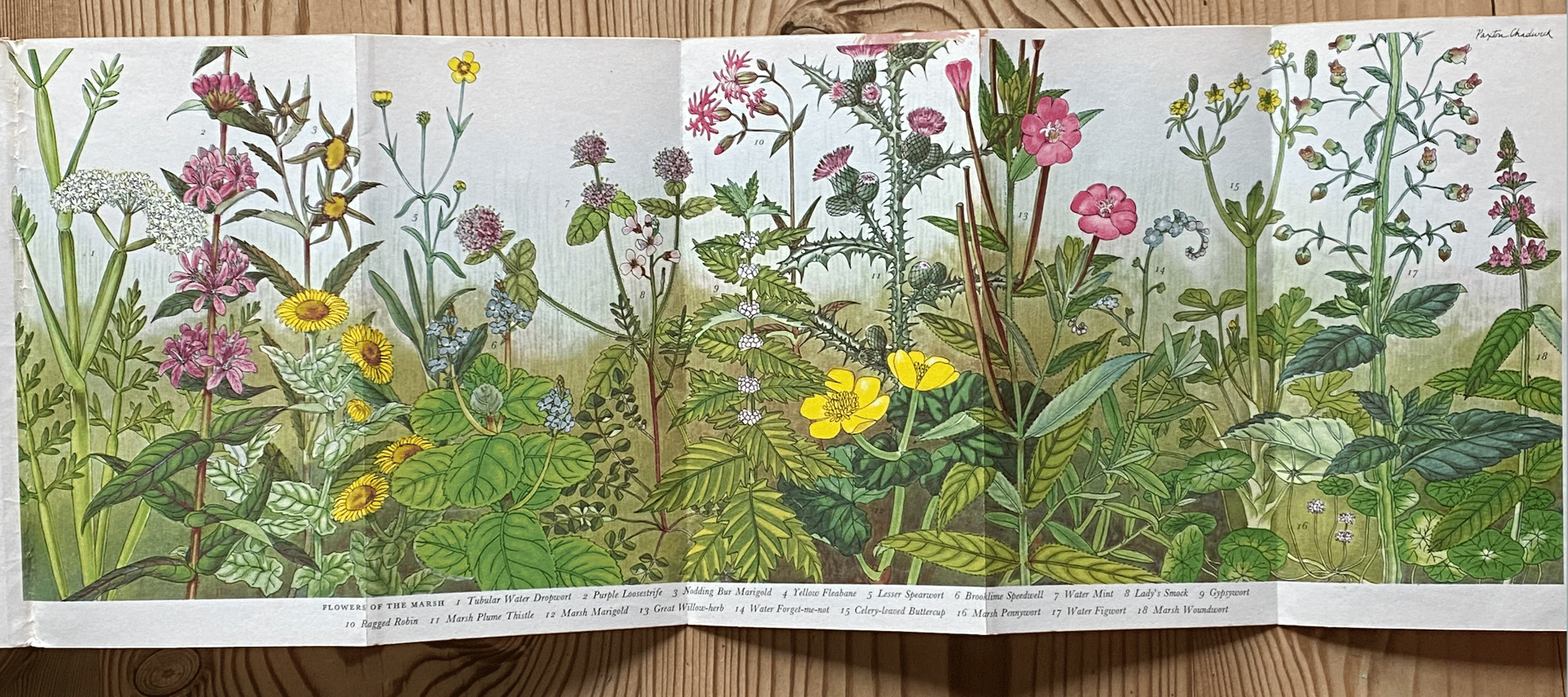 Flowers of the Marsh number 11 in the Cassell Pantoscope series, a rare book with one super pull out concertina full colour illustration by Paxton Chadwick.