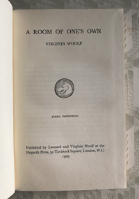 A Room of One's Own by Virginia Woolf, published by the Hogarth press in 1929.