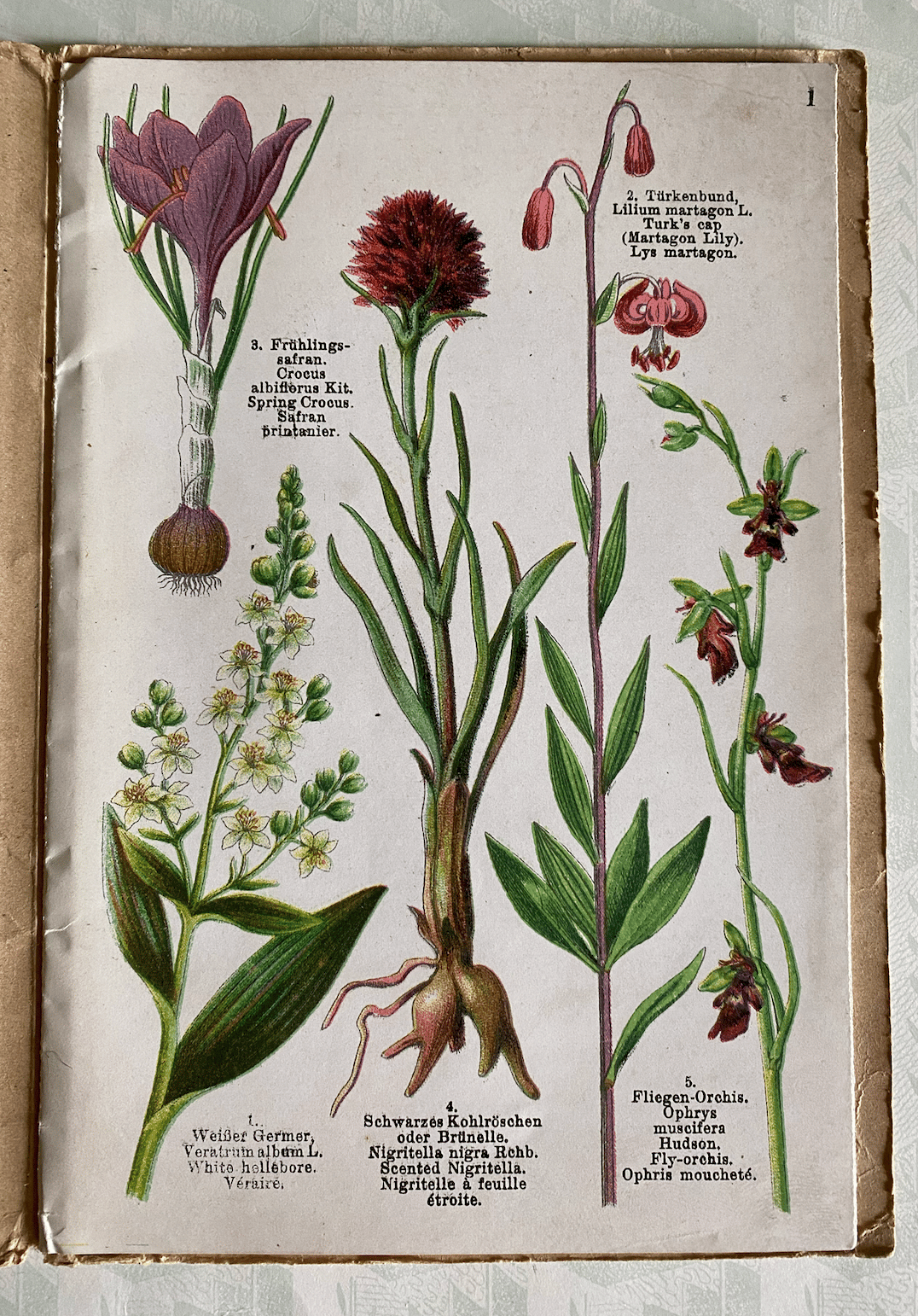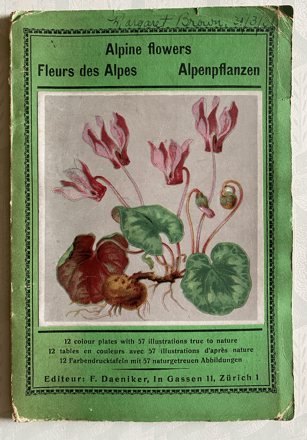 Alpine Flowers Fleurs des Alpes a thin vintage booklet with an impressive concertina pull out which has 12 pages and 57 illustrations.