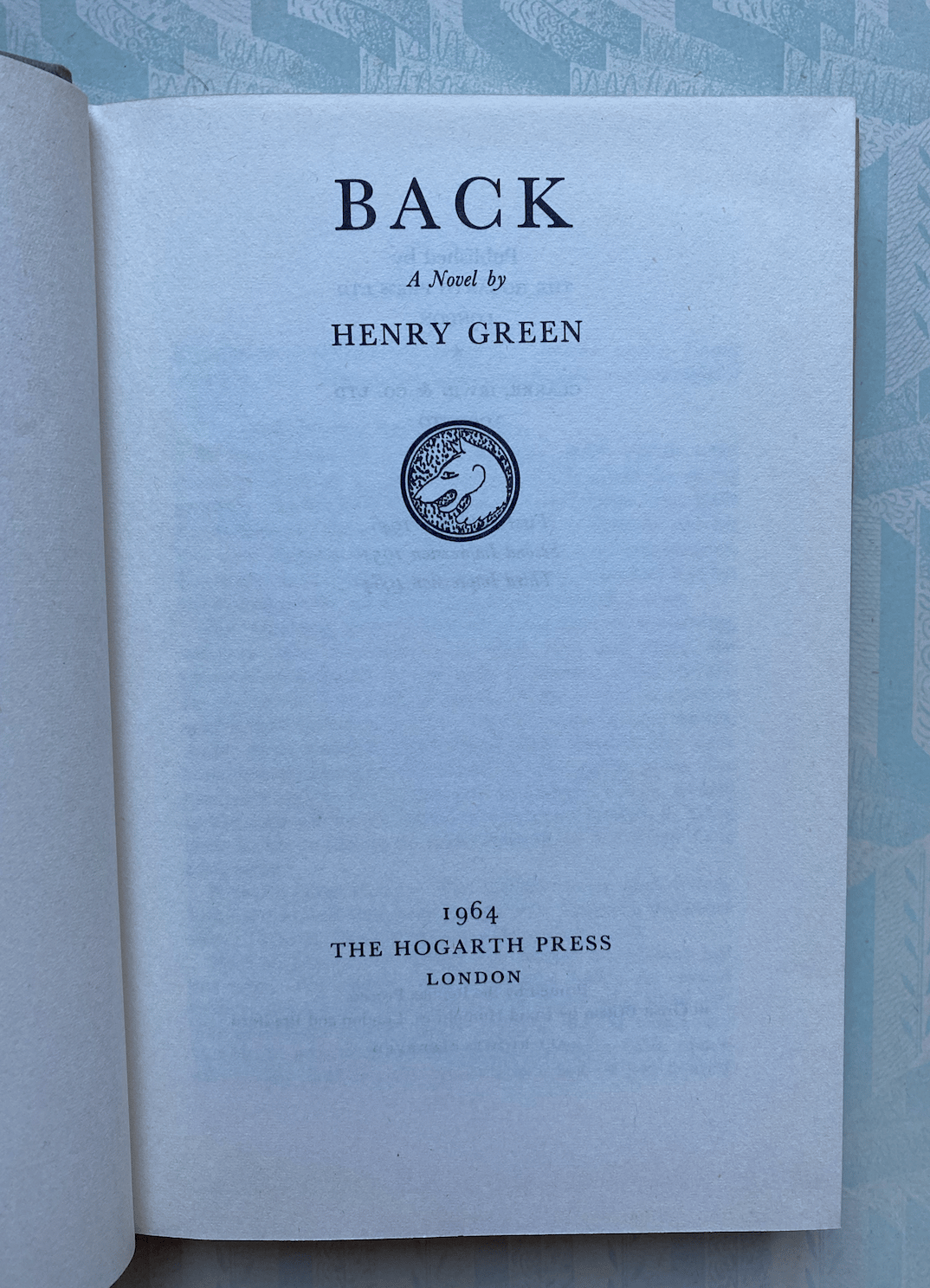 Back by Henry Green a vintage book published in 1964 by the Hogarth Press with a beautiful cover design by Vanessa Bell.