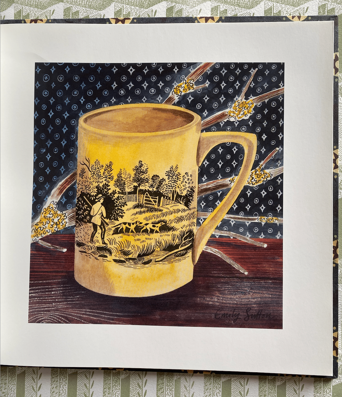 ******Emily Sutton has made a series of watercolours of the transferware pottery - plates, mugs and jugs - found on her dresser. They are a charming set, full of the quaint and fascinating subjects which the Victorians felt appropriate, mostly for the moral benefit of their children. Fleece Press has now published these together in a long accordion-fold book with a slipcase. Emily drew a title page specifically for this book, and signed each of the 250 copies.******
