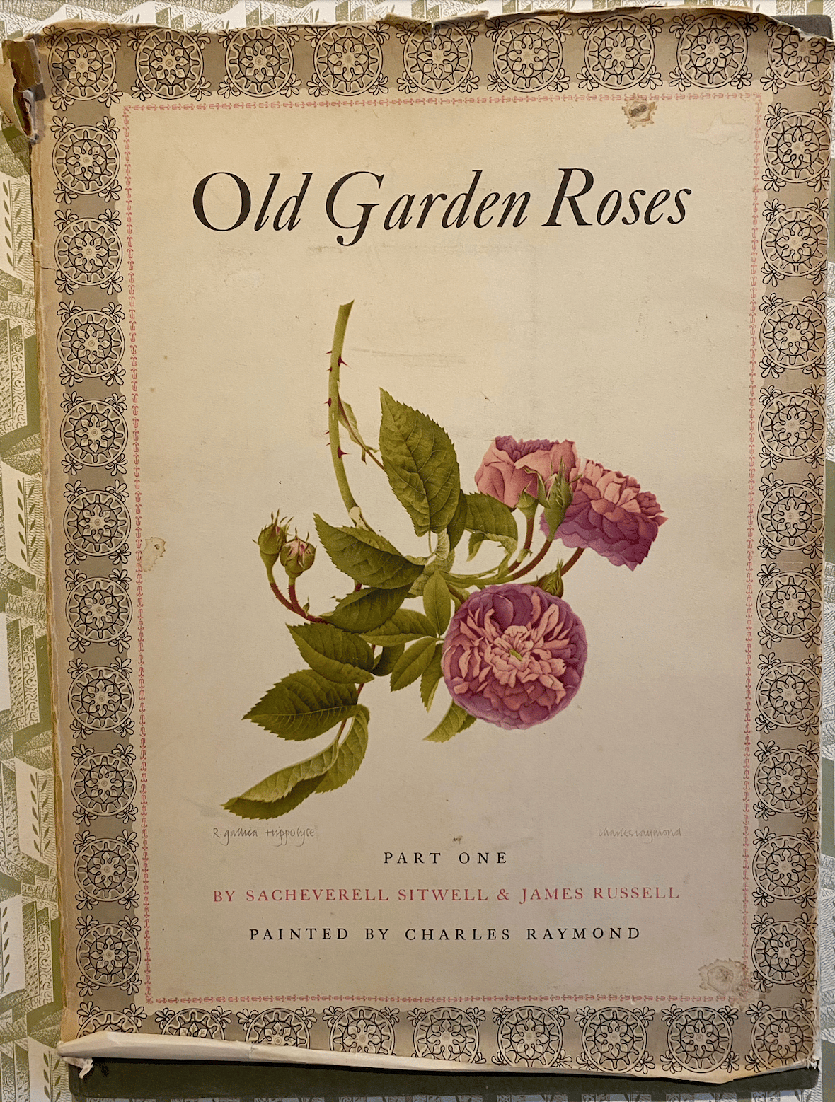 Old Garden Roses by Sacheverell Sitwell & James Russell with reproductions from paintings by Charles Raymond. A large format hardback book with 8 glorious plates depicting roses. Published in 1955.