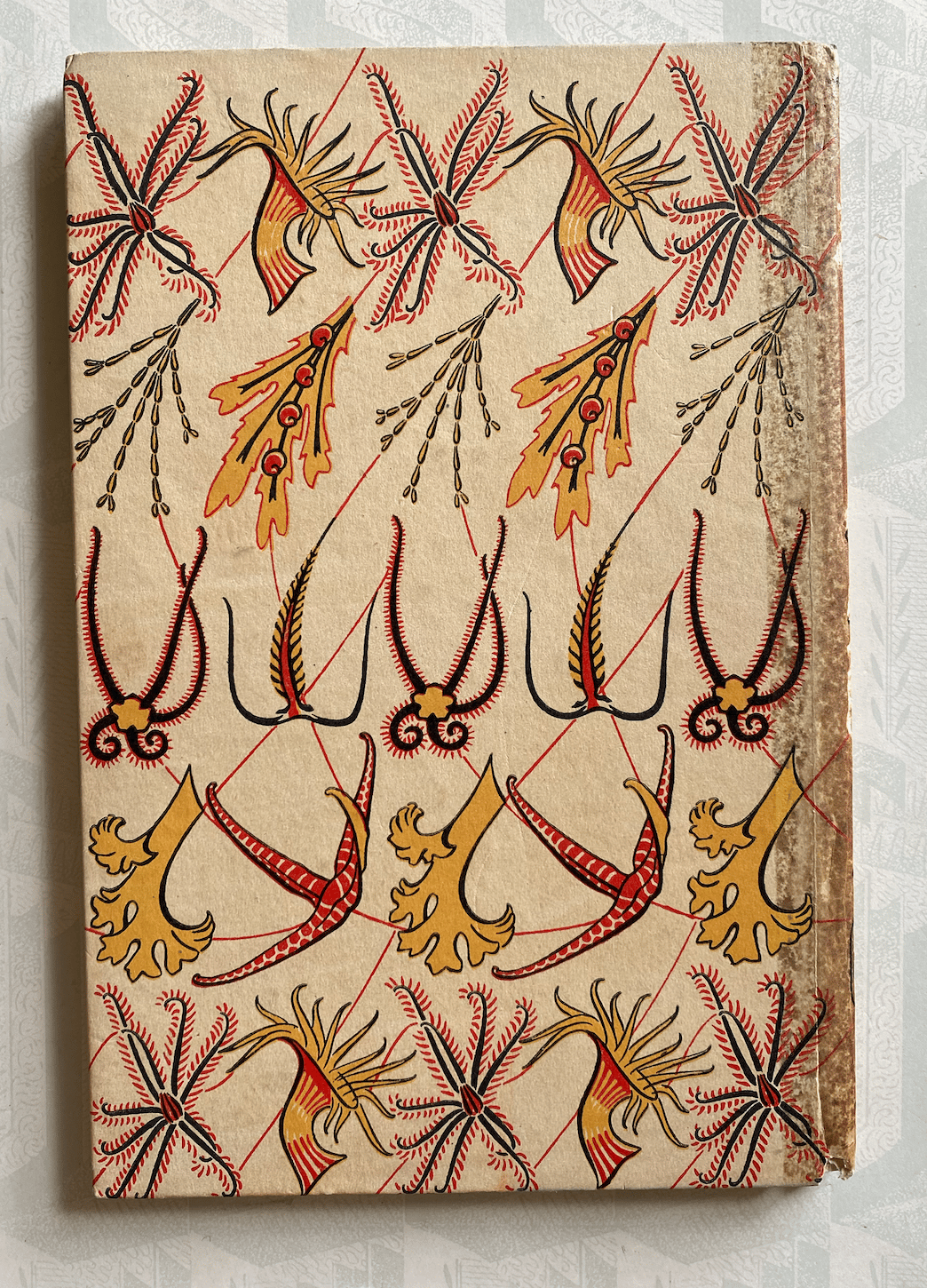 Condition: Fair with some discolouration and staining in the spine area, minor edge bumps and a tiny nibble at the bottom of the delicate spine.